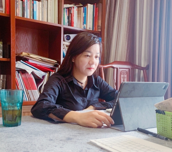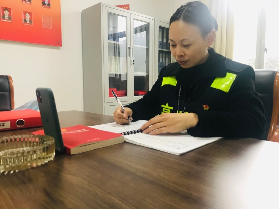 圖為視頻會(huì)議中,黨員認(rèn)真做筆記