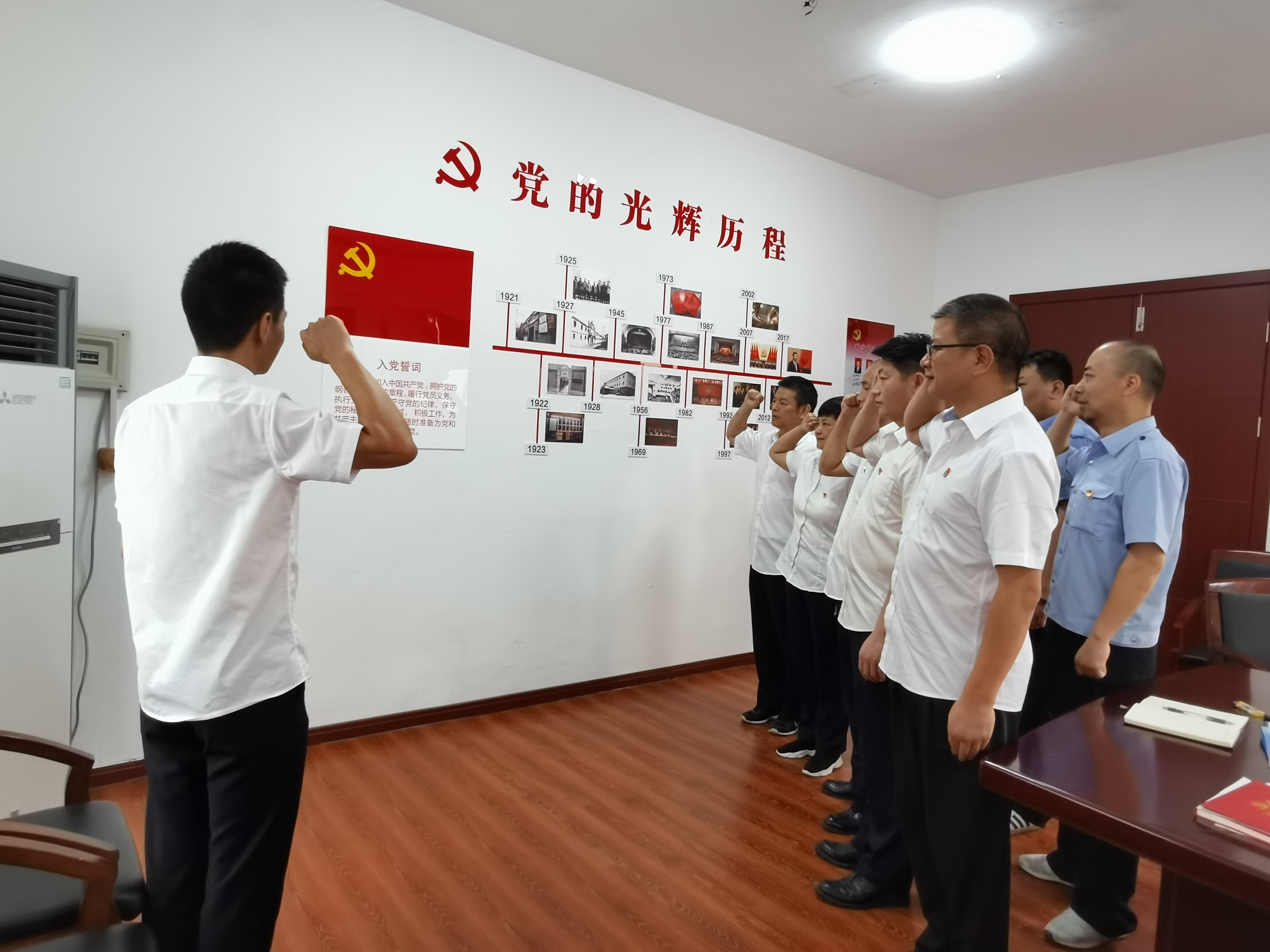 最后,全體黨員重溫入黨誓詞,站在黨旗下莊嚴地宣讀入黨誓詞,鏗鏘有力的聲音震撼了每一位黨員的心靈。