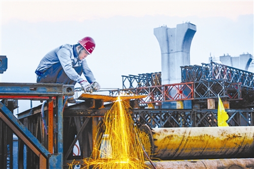 11月18日,內環線8號立交橋上,電工楊斌正在檢修新安裝的路燈。寒風凜冽中,來自安徽的小楊緊了緊衣領,又嫻熟地接拉起電線來。這幾天冷空氣來勢兇猛,但為了內環線早日通車,楊斌和他的伙計們,頂風冒雨,只爭朝夕。